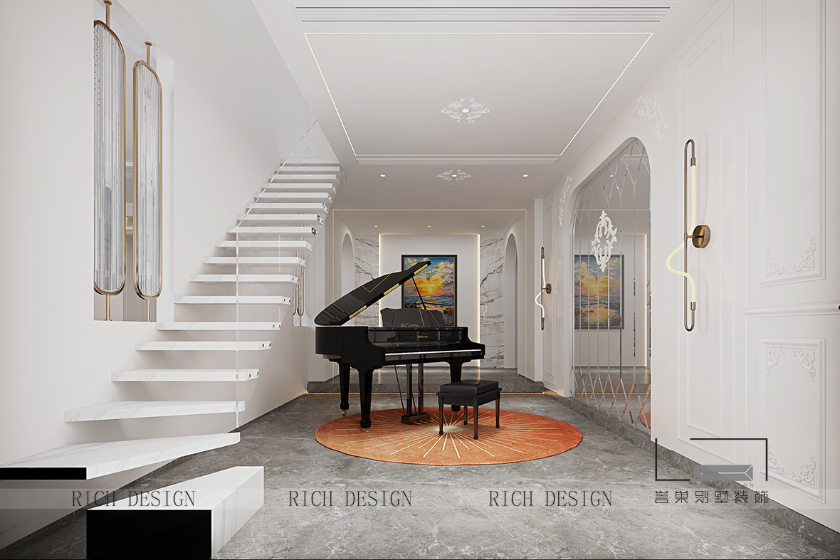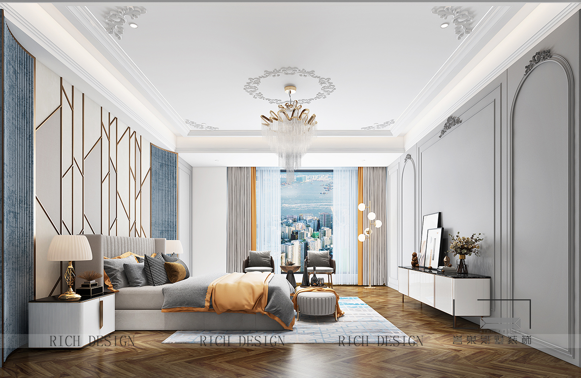 設計師在傳統法式的基礎上衍生出有新法式面貌的風格,在保留法式的傳統裝飾圓度下做簡化處理,形態簡約而不失奢華,打造利落率性的氣質,呈現出時尚與奢華的空間。